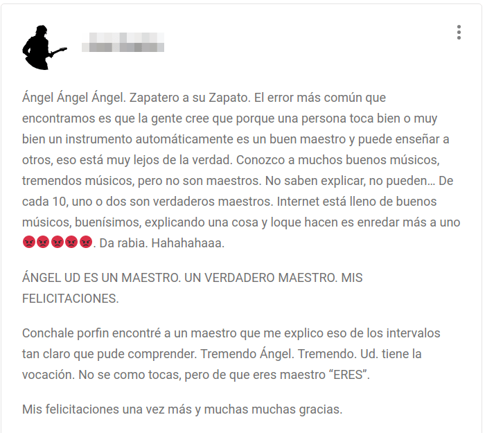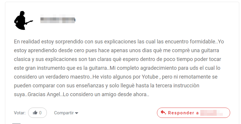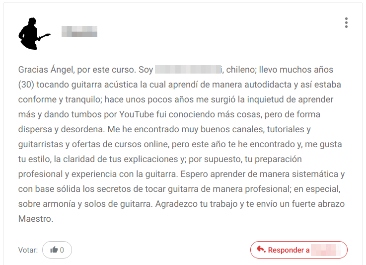 Testimonio de Manuel (está contento con el trabajo en la escuela de guitarra online, los cursos y el seguimiento que recibe)