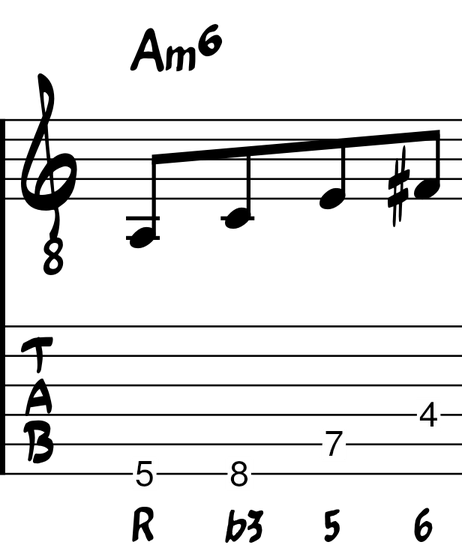 Nuevamente, si te parece familiar, es porque ya lo tocaste una posición muy similar en el primer ejemplo que te mostré más arriba: el Am6: