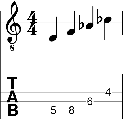 Como ya explico en detalle en esta lección sobre las triadas disminuidas, este tipo de triada se compone de 2 terceras menores. De modo que una triada disminuida a partir de Re tendría las notas Re, Fa y La bemol: