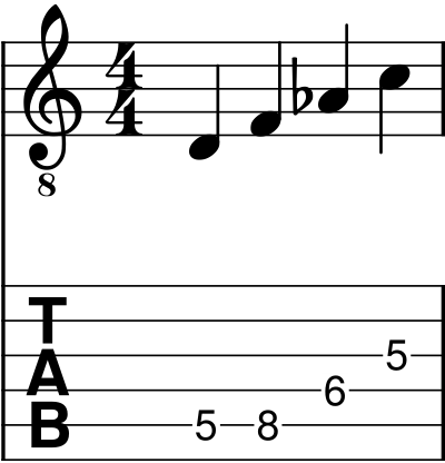 Siguiendo con el ejemplo anterior, un acorde de Re semidisminuido tendría las notas Re, Fa, La bemol y Do: