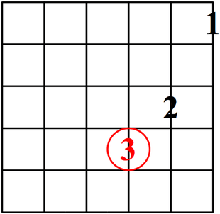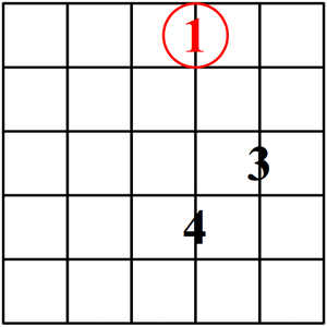 Recuerda: La nota en color rojo (encerrada en un círculo) representa la tónica o nota fundamental de la triada. En otras palabras, es la nota que nos dice en que tonalidad estamos tocando. Por ejemplo, si ubicamos esa digitación de modo que la nota en rojo quede en la quinta cuerda, quinto espacio, estaremos ejecutando una triada disminuida de re.